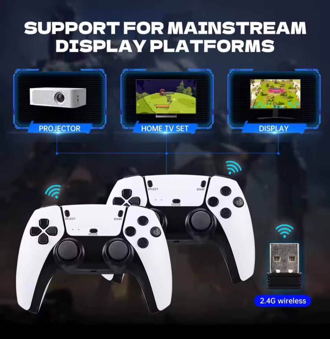گیم استیک طرح ps5 که یک کنسول بازی نوستالژیک هست. دارای بازی های 15 کنسول قدیمی پلی استیشن 1، سگا، میکرو،کامپیوتر،تیتند ، آتارای و...